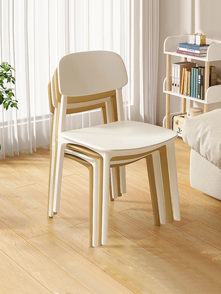 厚みのある快適なプラスチック製ダイニングチェア - シンプルでスタイリッシュ、家庭やオフィスに最適!長時間座っても疲れにくく、スタッキング可能で収納も便利。