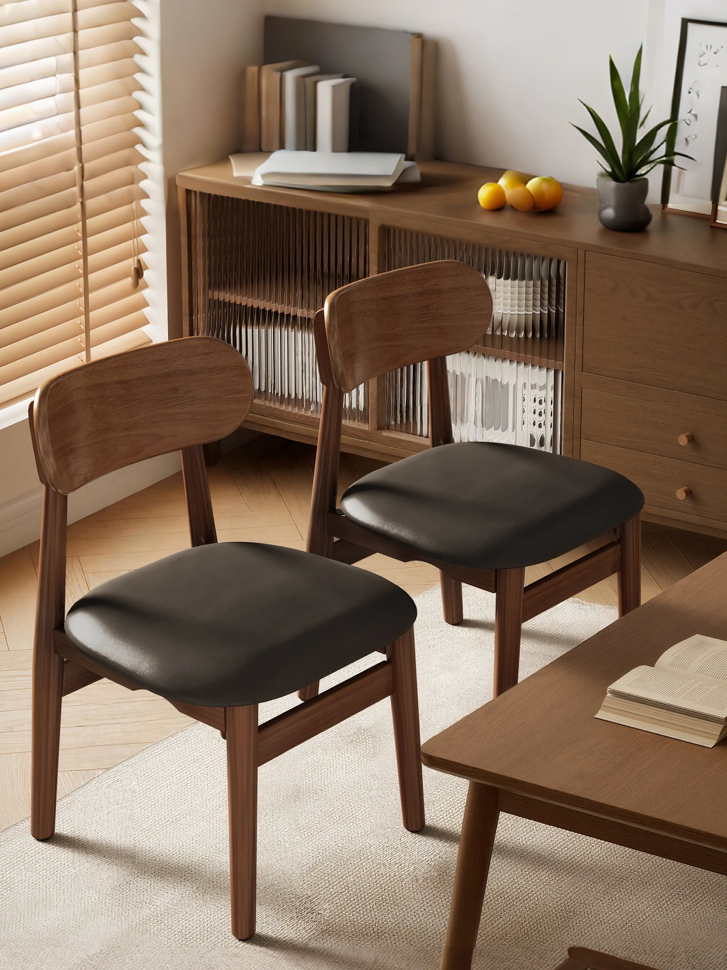 2025年新登場!美しい胡桃色の実木製ダイニングチェア - 快適な背もたれと柔らかなクッション付き。おしゃれなレストラン風の雰囲気を自宅で楽しむ!中古品ですが、品質は抜群。食事の時間をより特別に!