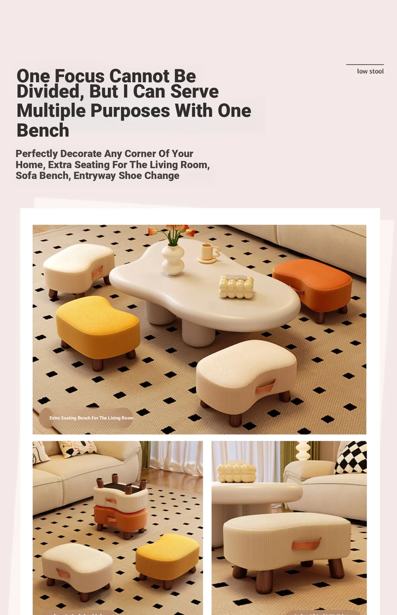 Cute and Creative Living Room Sofa Ottoman - Soft Padded Footrest for Home Entryway, Shoe Changing Stool, and Bedroom Clothes Bench