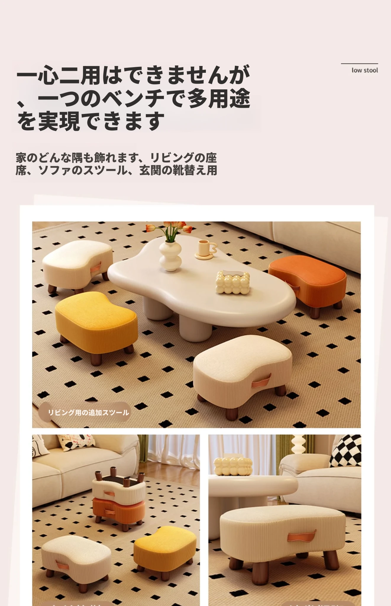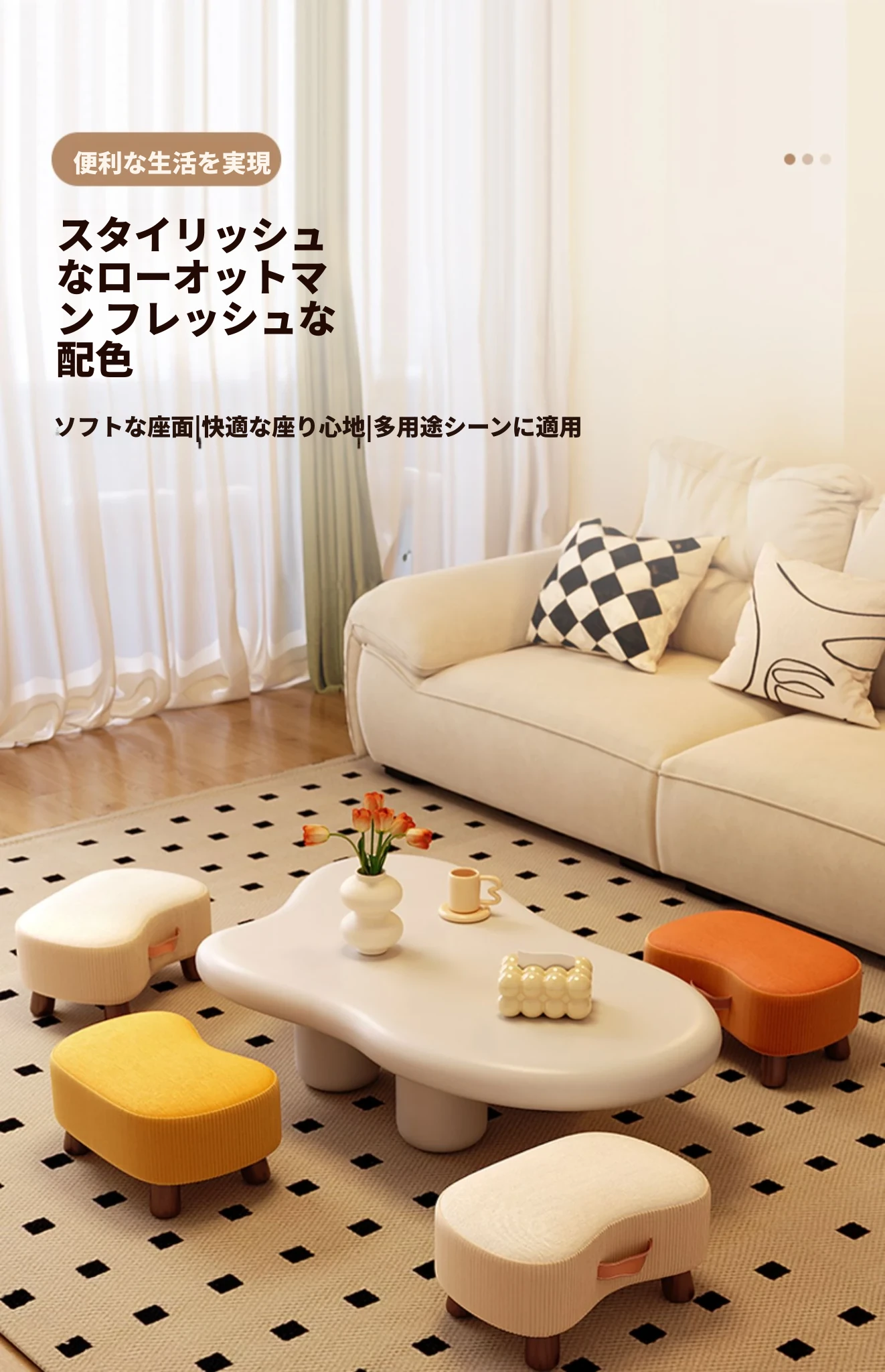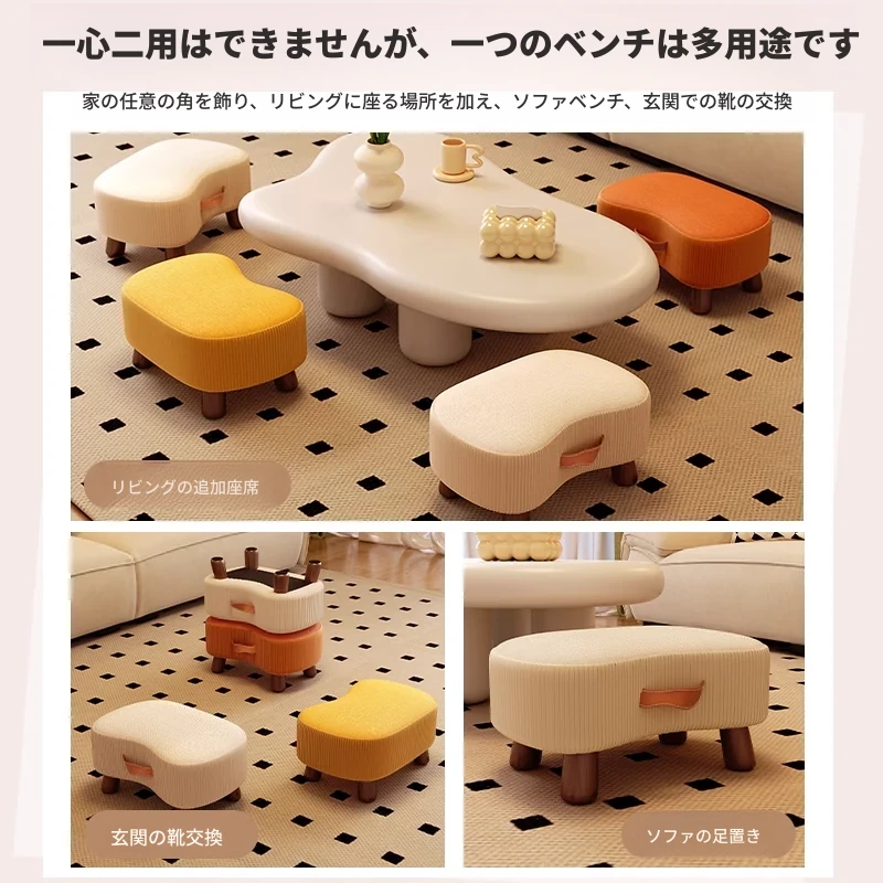 可愛いデザインのリビングソファ用スツール!クリエイティブなフットレスト、柔らかいクッションで快適!玄関での靴脱ぎや、ベッドルームでの衣類置きにも最適!あなたの生活空間を彩る便利アイテムです!