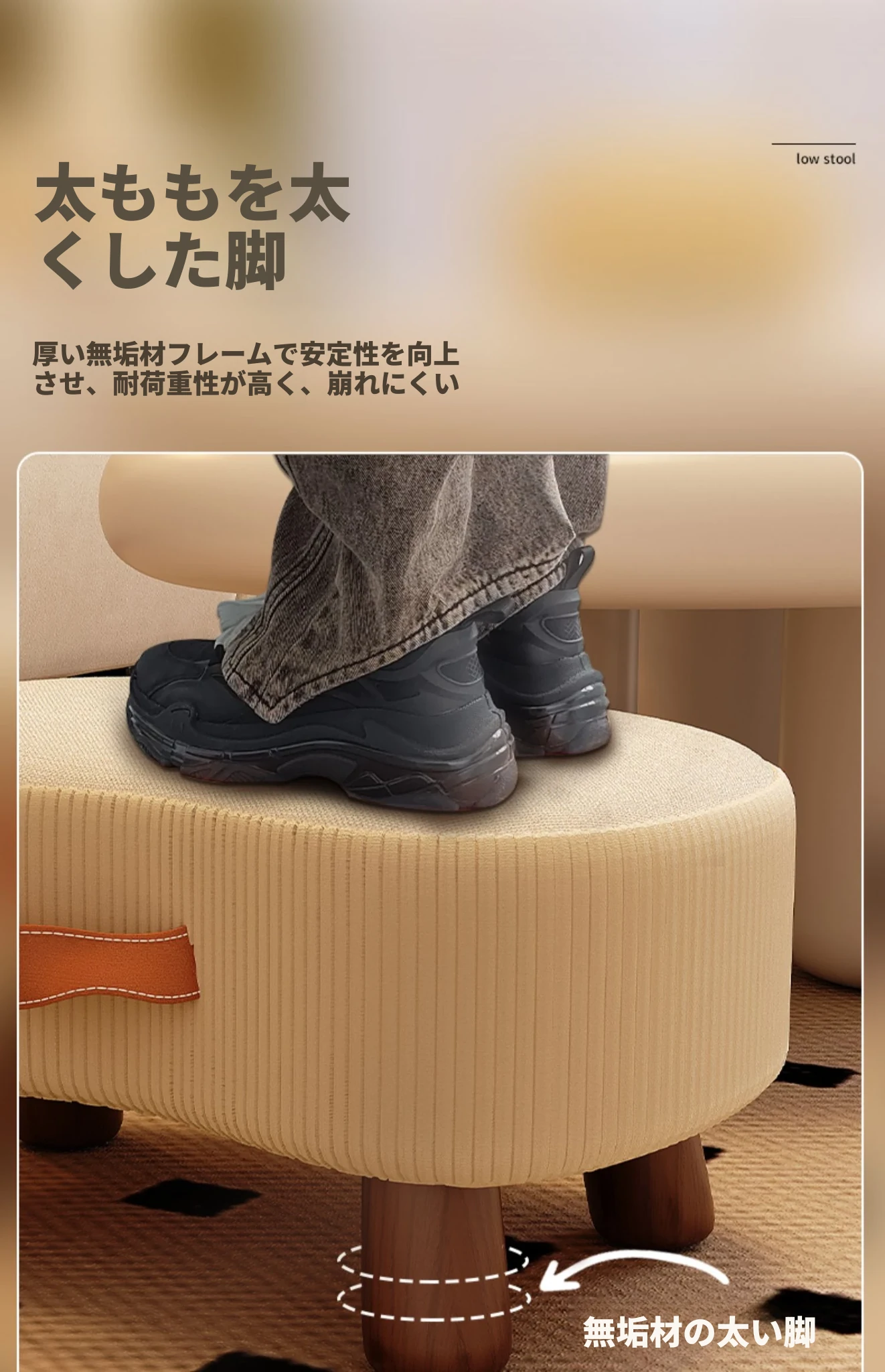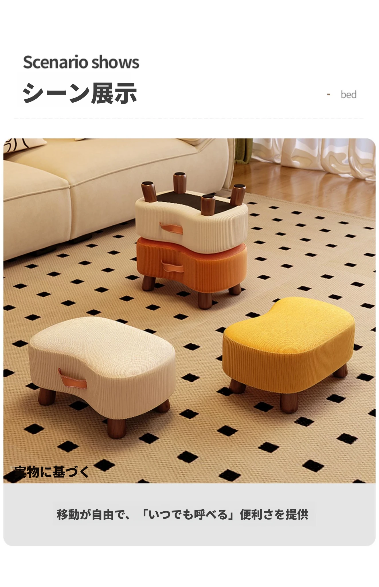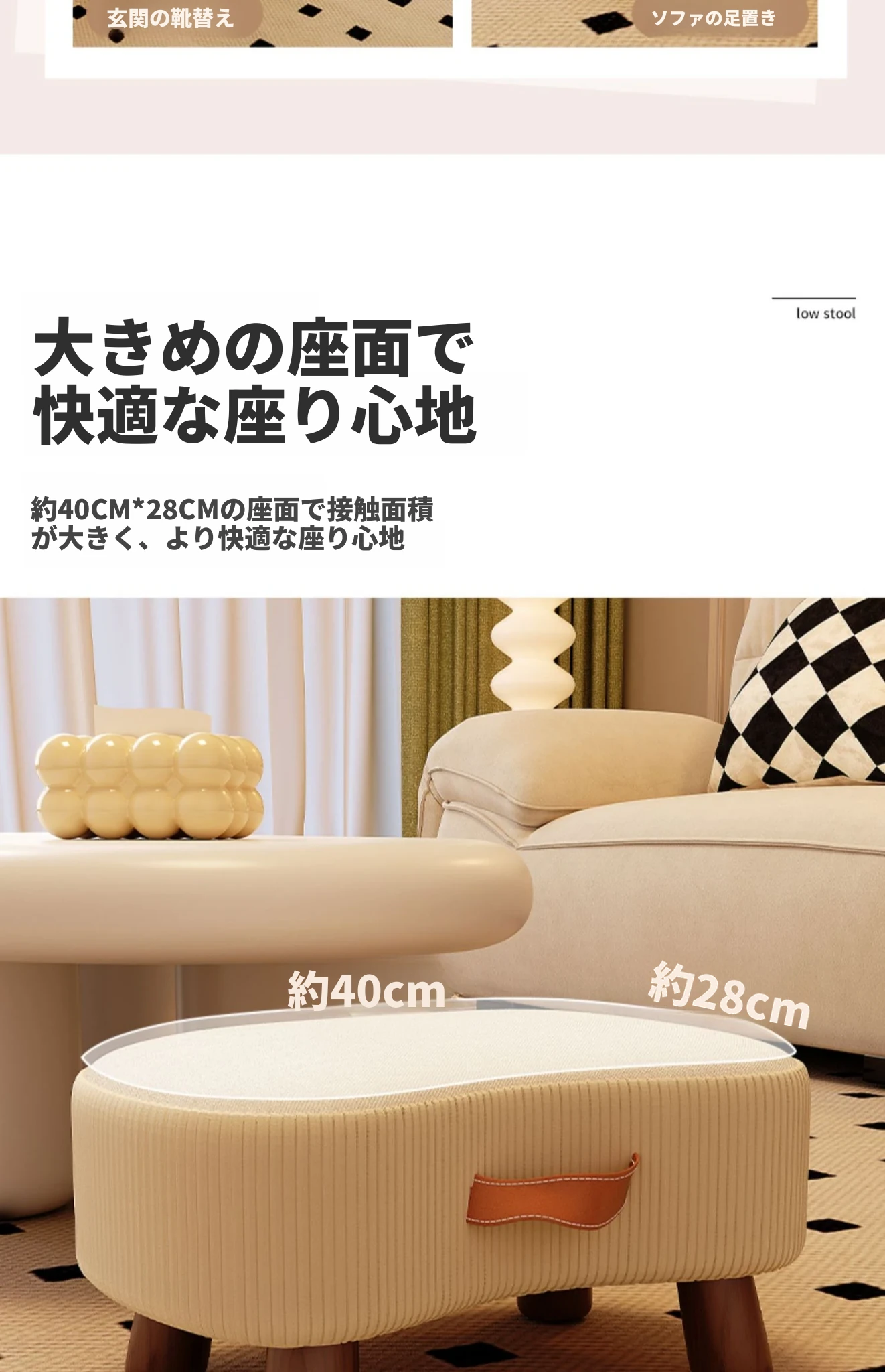 可愛いデザインのリビングソファ用スツール!クリエイティブなフットレスト、柔らかいクッションで快適!玄関での靴脱ぎや、ベッドルームでの衣類置きにも最適!あなたの生活空間を彩る便利アイテムです!
