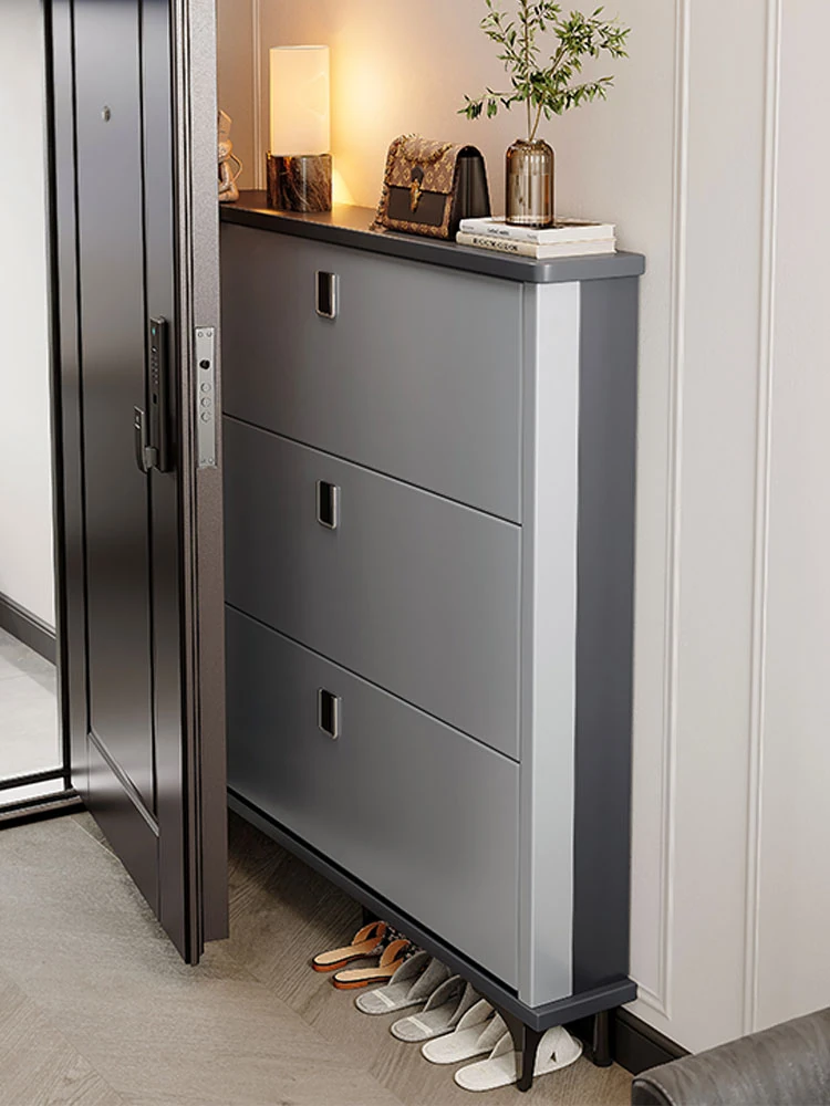 超薄デザインの翻斗靴棚 - 家庭用・狭いドアにも最適!2025年新作、壁にぴったりフィットする玄関靴ラック!収納力抜群で、スッキリとしたお部屋作りをサポートします。