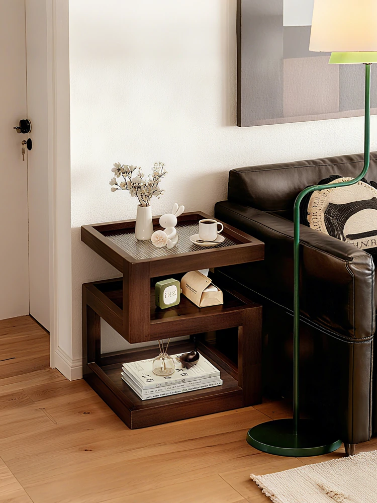 全実木製ソファサイドキャビネット|リビングの収納に最適!新作の寝室用ベッドサイドキャビネットとしても使える、レトロでスリムなデザインのミニサイドキャビネット!