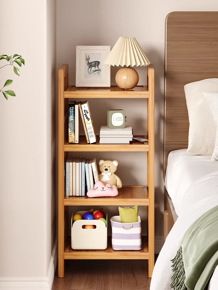 ベッドサイド収納キャビネット - スリムでスタイリッシュなデザイン、壁際にぴったりフィット!お部屋をすっきり整理整頓、貴重なスペースを有効活用できる便利な収納ラックです。