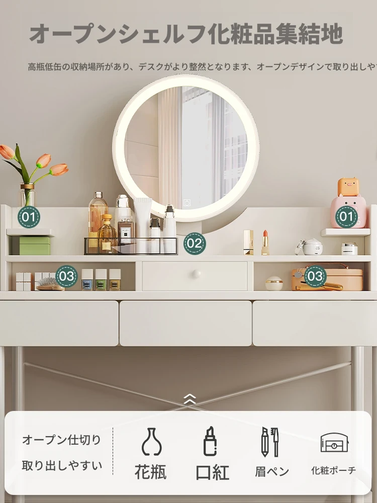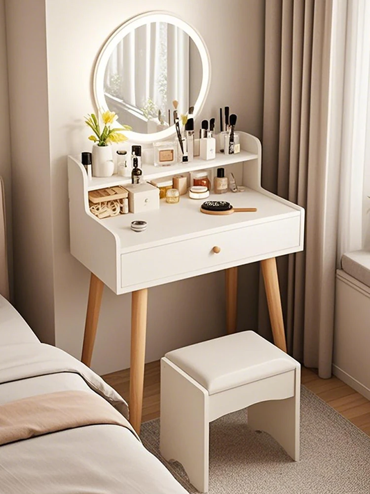 2025年新作!モダンミニマリストの小型ドレッシングテーブル - おしゃれな収納付き、コンパクトな寝室向けメイクアップデスク。小さなスペースにぴったり!