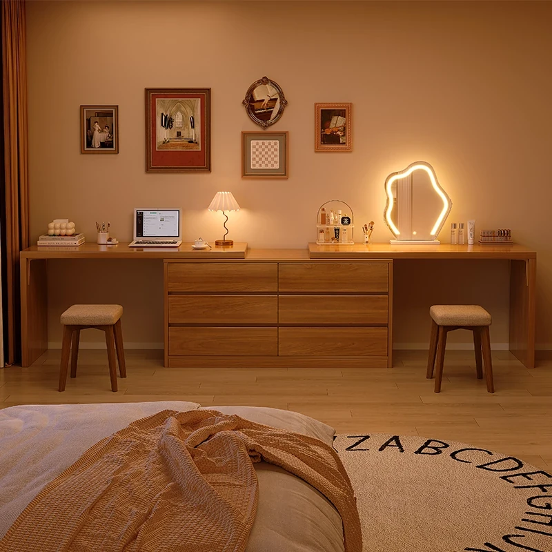 新中式デザインの実木製ドレッサー!シンプルでモダンな寝室にぴったり、ベッドサイドキャビネットと一体型で大容量収納を実現!おしゃれで機能的な化粧台で、美のひとときをお楽しみください。