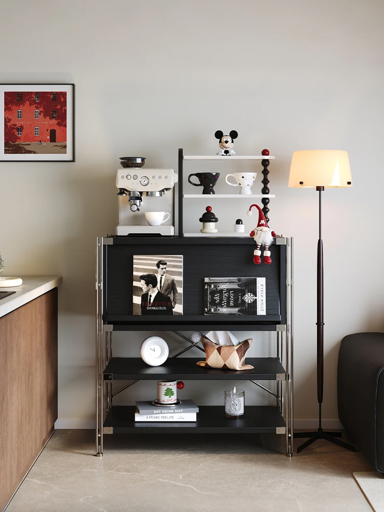 コーヒーラック 壁に寄り添うスタイリッシュなローボード 抽斗付き収納キャビネット 雑誌やレコードのディスプレイに最適!おしゃれで機能的なインテリアアイテムで、あなたの空間を美しく演出します。