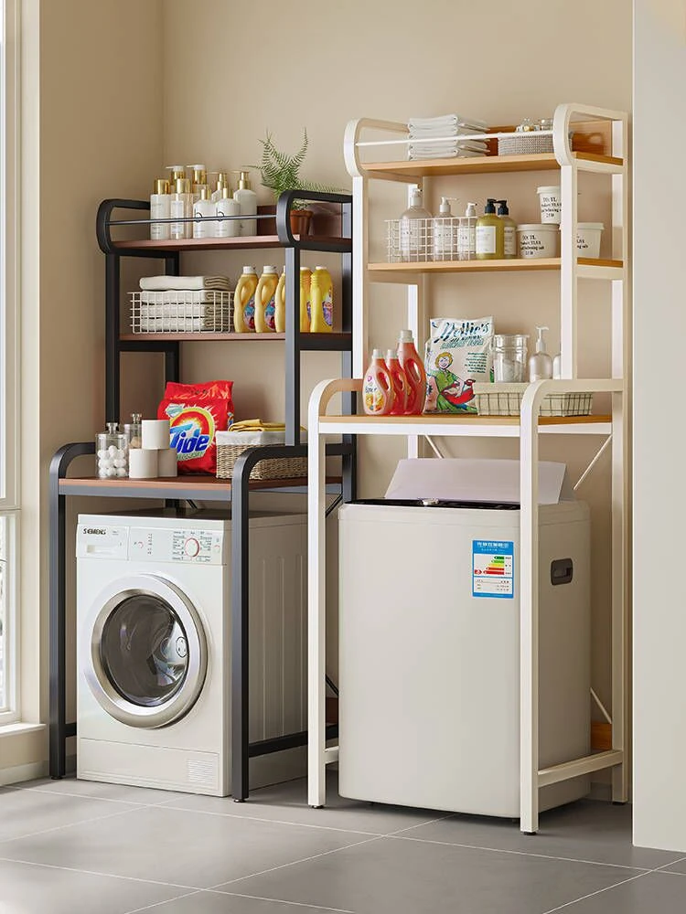 洗濯機用マルチ収納ラック!バルコニーやトイレに最適な多層式・床置きタイプ。上部には洗濯機の上にピッタリの収納スペースを確保し、家の中をスッキリ整理整頓!