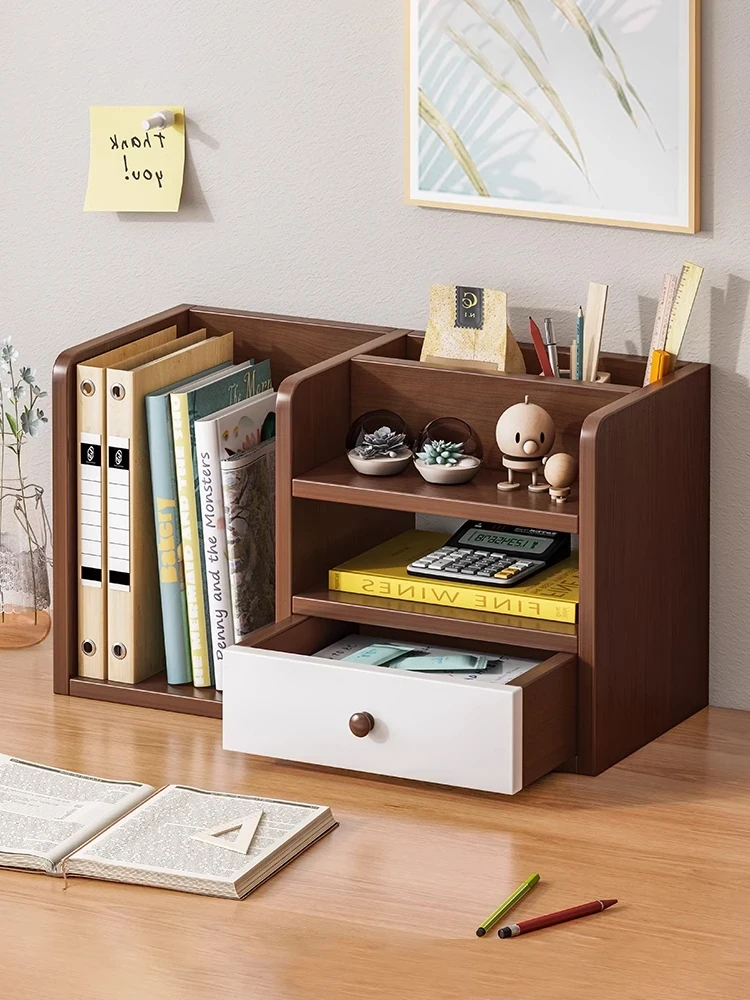 デスク上にぴったり!多層型の小型書棚 - 学生やオフィスに最適な整理整頓ラック。シンプルなデザインで、書類や本をすっきり収納!あなたの作業スペースをもっと快適に!