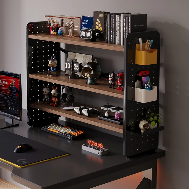 ゲーミングデスク用収納ラック|多機能シェルフ|家庭やオフィスに最適な書籍・小物整理に|スタイリッシュなデザインで空間をスッキリ!
