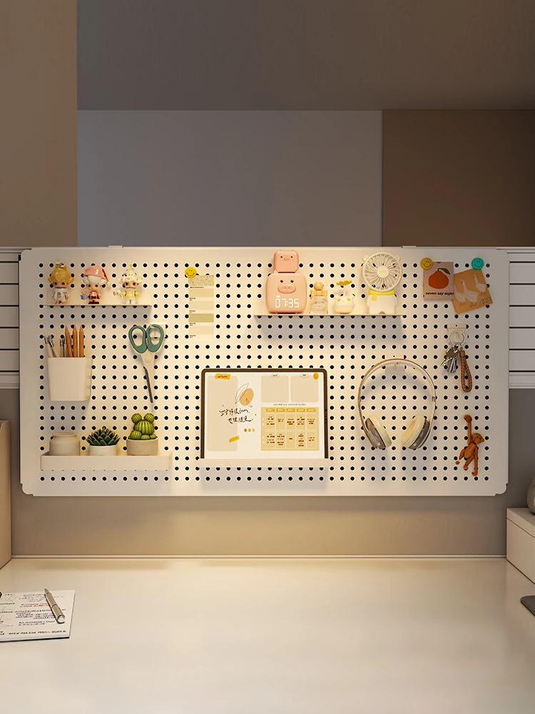 オフィスデスク用の便利な穴あきボード収納ラック!女性のためのスタイリッシュなクリップ式パーティションで、おしゃれに整理整頓。デスクをスマートに変身させる必需品!
